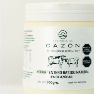 En Pasturas de Caz贸n, promovemos una alimentaci贸n saludable porque creemos que cuidar de vos mismo es una forma de amor propio. Nuestro yogurt entero batido natural ligeramente azucarado es una elecci贸n que te acerca a tus metas de bienestar, nutriendo tu cuerpo con lo mejor que la naturaleza tiene para ofrecer. Incorpor谩 en tu d铆a a d铆a y hacelo posible, compr谩 y ahorra en pote de 800 grs. de Yogurt entero batido natural con 4% de az煤car 100% vacas jersey.